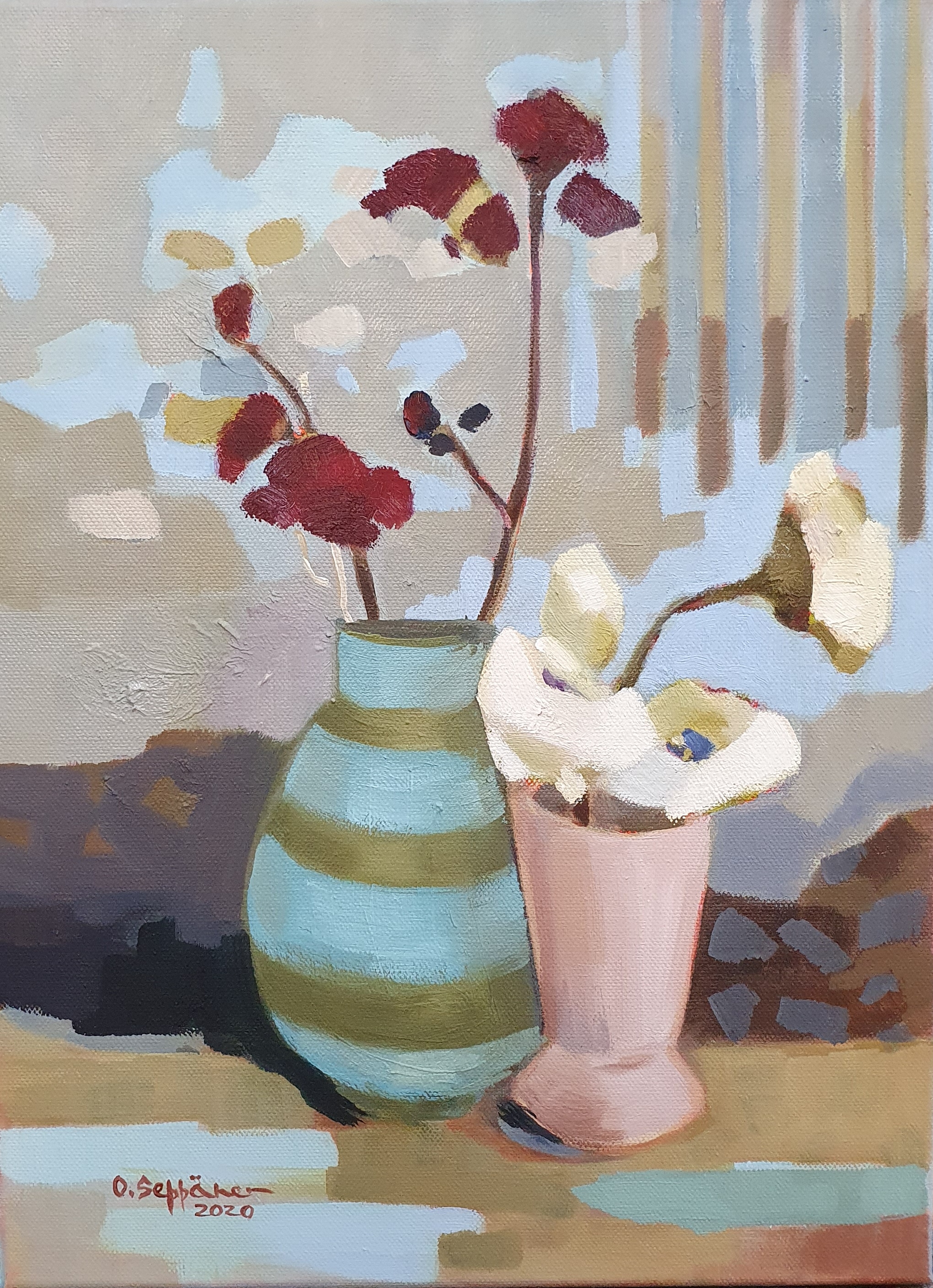 Kukka asetelma, öljyväri kankaalle, 40×30 cm, 2020