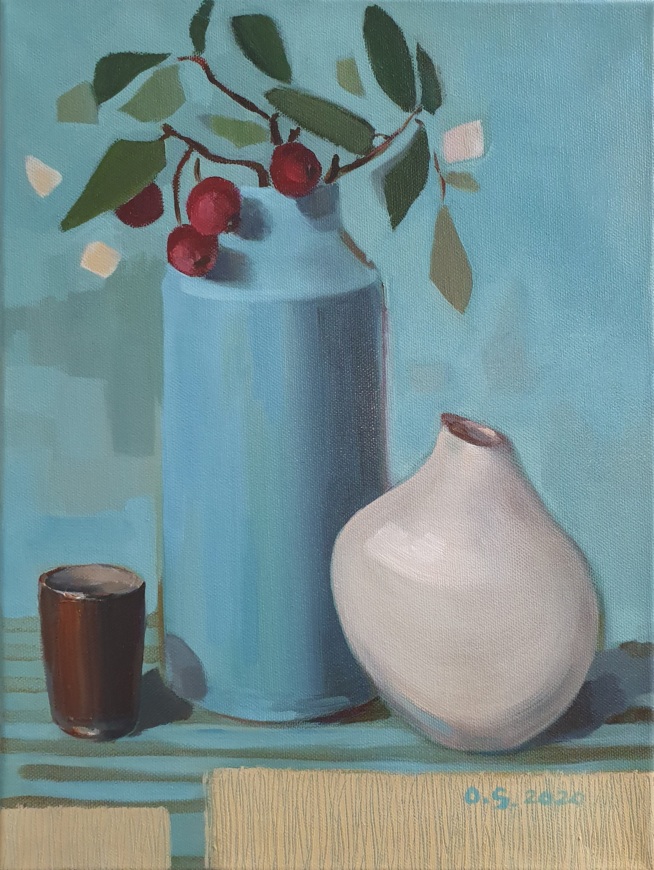 Orapihlaja, öljyväri kankaalle, 40×30 cm, 2020