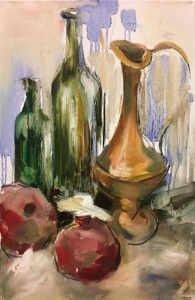 Granaattiomena asetelma,öljyväri kankaalle, 60×40, v. 2017