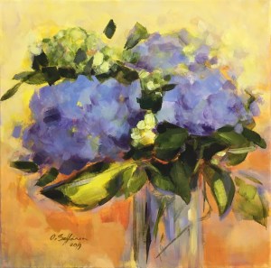 Hortensia(Hydrangea), akryyliväri kankaalle, 40×40, 2019