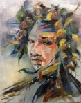 ”Ilman naamiota” öljyväri vanerille 32×35 v.2017