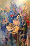 ”Kukkakimppu 1” sekatekniikka 70×50 v. 2020