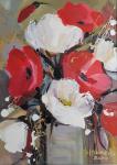 ”Tertturuusut maljakossa”, öljyväri kankaalle, 50×40 cm, v. 2024