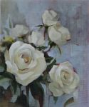 ”Valkoiset ruusut” sekatekniikka 50x 70 v. 2021