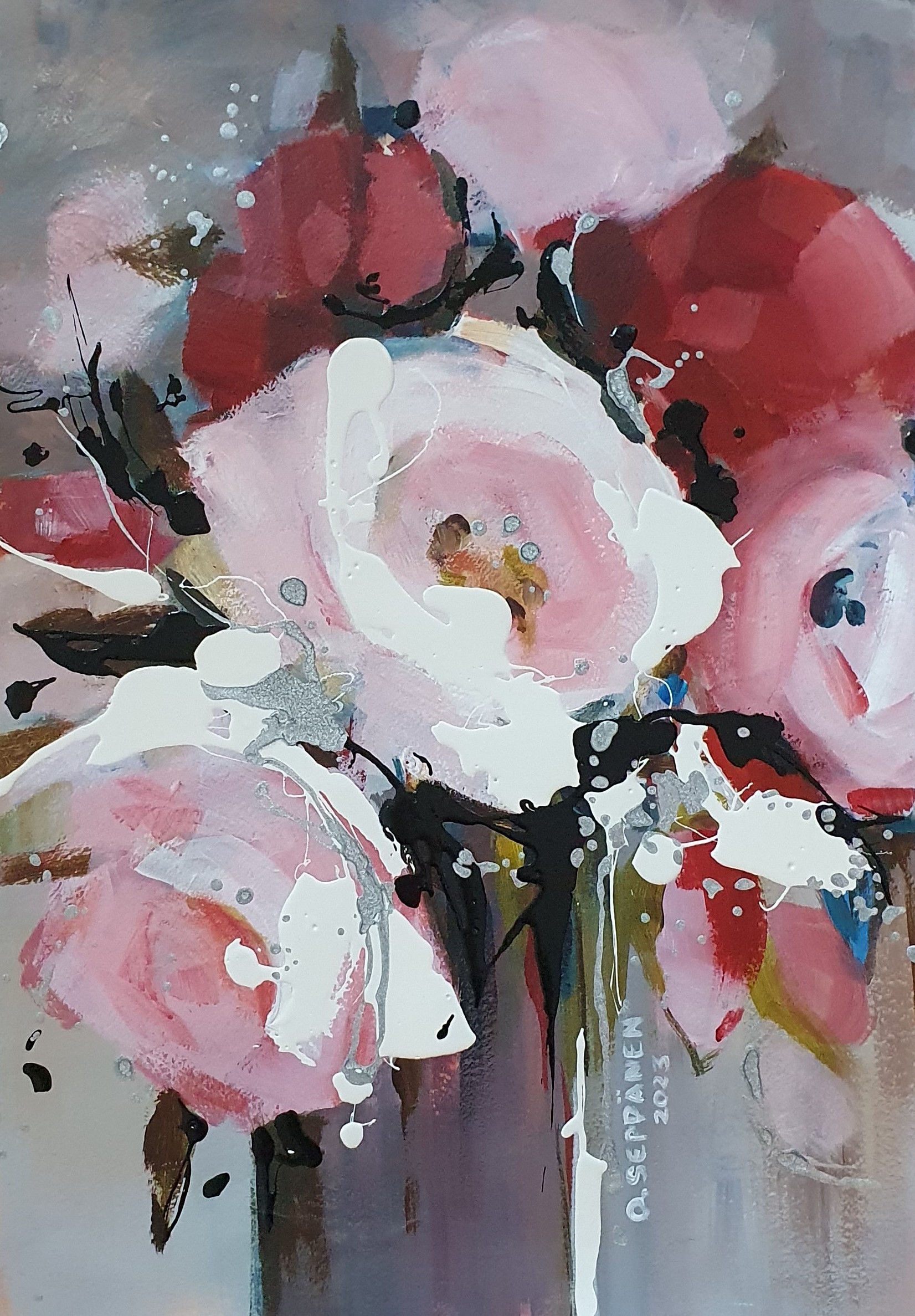 Aamu, sekatekniikka, 57×42 cm, v. 2023, 500.-