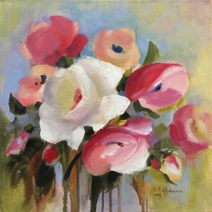 Heinäkuun ruusut, öljyväri kankaalle 40×40, v.2018