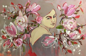 Takapihan kaunottaret,sekatekniikka kankaalle,100×150,v.2018