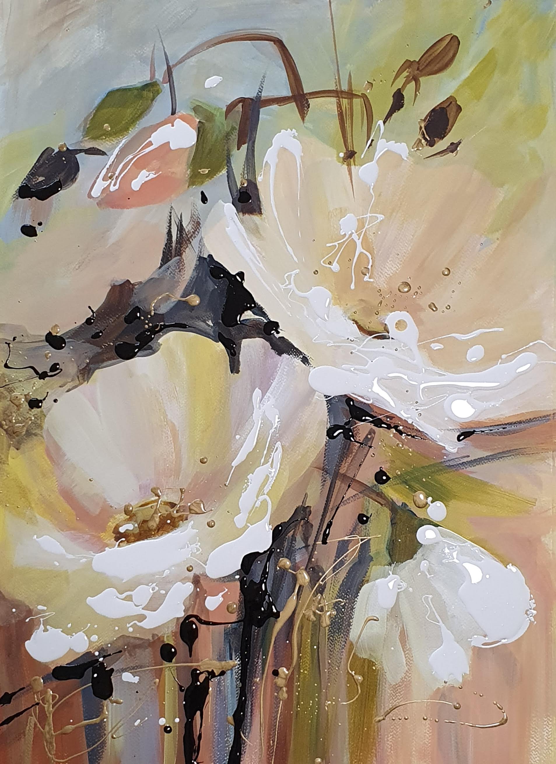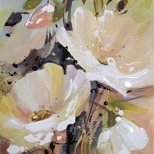Kukkakimppu 1, sekatekniikka paperille,70×50 v. 2020