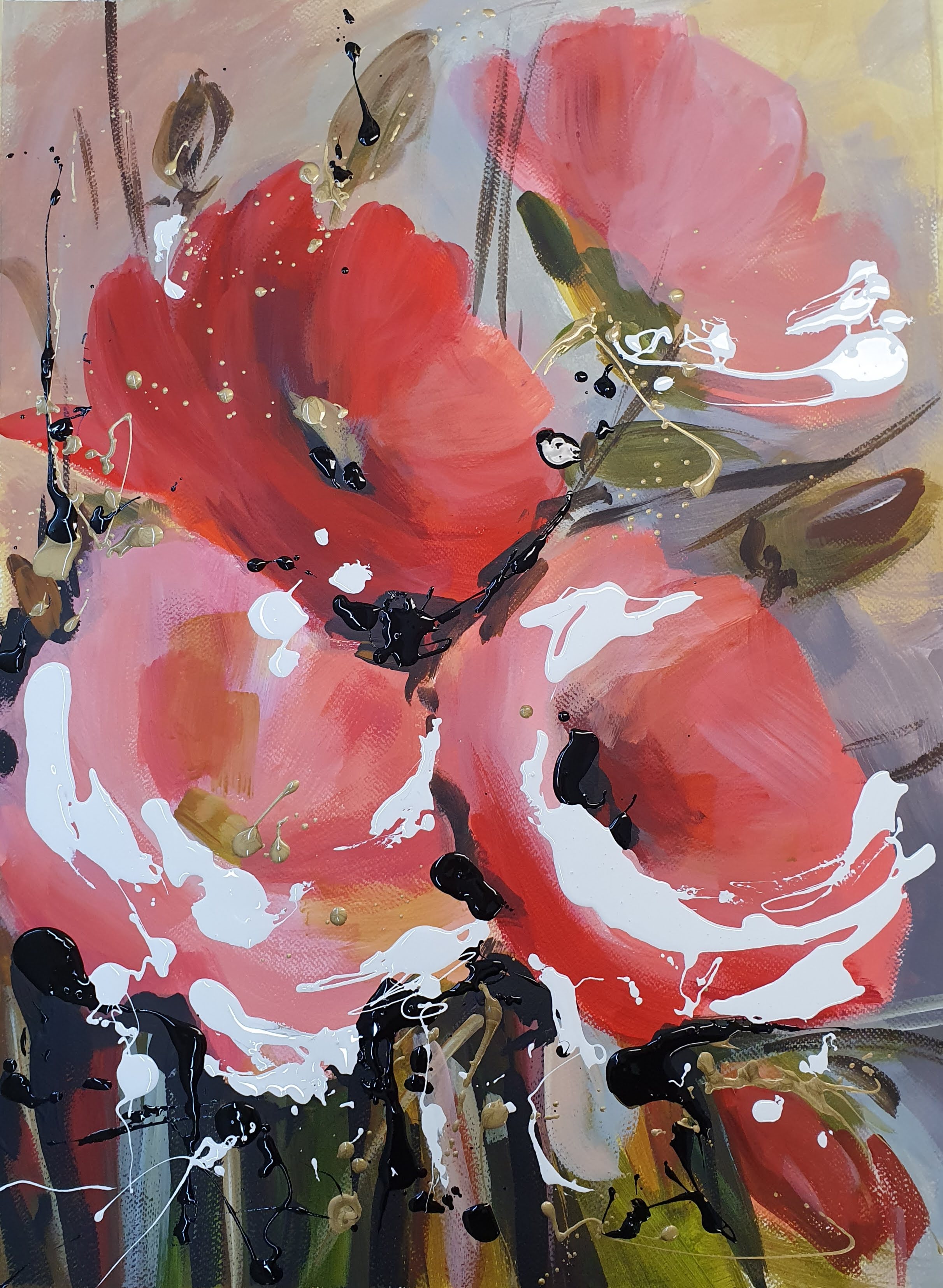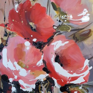 Kukkakimppu 2, sekatekniikka paperille,70×50 v. 2020