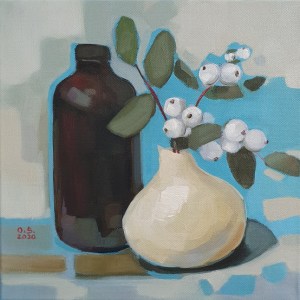 Valkolumimarja, öljyväri kankaalle, 30×30 cm, 2020